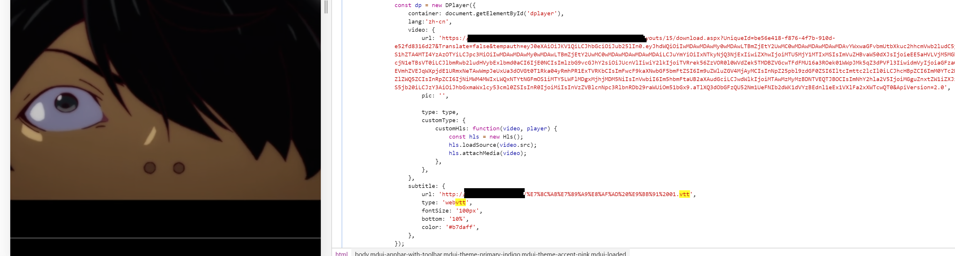 Dpayer播放器调用vtt字幕,